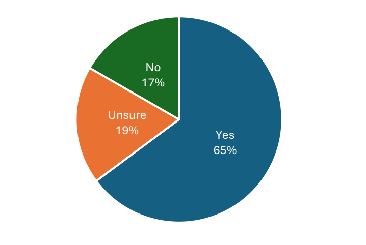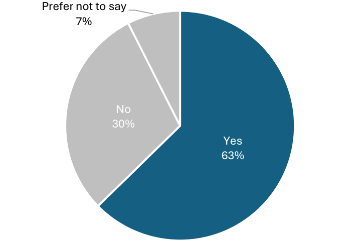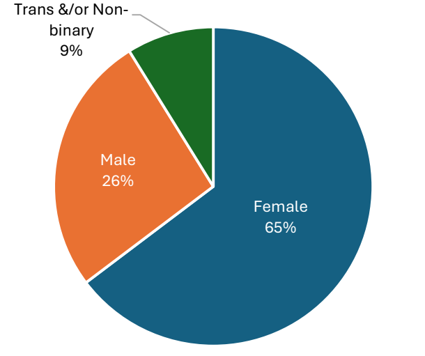 In putting together the questionnaire we used a 5-point Likert scale, which is helpful for converting qualitative data into quantitative output. Throughout attention is drawn to the negative outcomes our community is experiencing. Note, firstly, that 65% of respondents identified as female (figure 3), which is less than the expected survey bias (normally at 67%); and secondly, that 24% of respondents were replying for someone they supported (figure 1). We had an excellent completion rate, with no drop off over the course of over 30 questions.